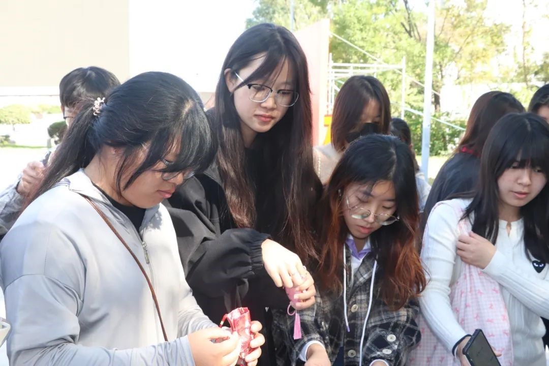 本次活动由永“结”同心、“香”约重阳、爱“眼”护眼、“漆”彩纷呈四部分组成。活动当天,北辰广场洋溢着浓厚的节日氛围,大家积极参与,在永“结”同心摊位前,同学们精心编制中国结;在“香”约重阳摊位前,同学们用茱萸、艾草、干菊花等九种香料用以制作香囊;在爱“眼”护眼摊位前,工作人员准备了菊花、蒲公英等药材,引导同学们将其捣碎后装入过滤袋中,用于敷眼以保护视力;在“漆”彩纷呈摊位前,同学们一边制作漆扇,一边愉快地交流沟通。