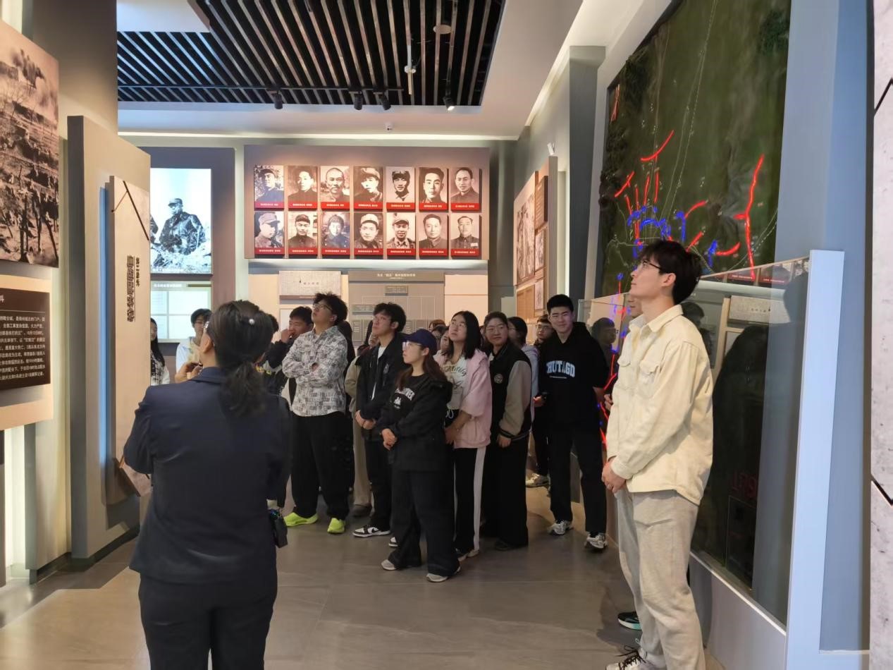 配水池战斗遗址是辽沈战役中解放锦州的关键战场,曾经历了一场异常惨烈的攻坚战。在讲解员的引导下,师生们依次参观了遗址纪念馆、战壕遗迹和烈士纪念碑,展馆内,一张张泛黄的历史照片、一件件锈迹斑斑的战斗遗物、一段段震撼人心的影像资料,生动还原了东北野战军将士浴血奋战的壮烈场景。参观过程中,同学们神情肃穆,认真聆听讲解,不时驻足观看,深刻感受到革命先烈的英勇无畏和坚定信念以及为民族独立所做出的历史性贡献。