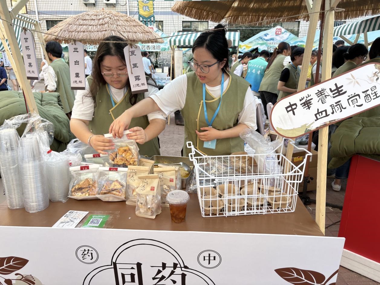 早在夜市开始的前一周,本草协会的志愿者们便已投身于紧张有序的前期准备工作中。在中医医院专业老师的悉心指导下,他们严谨细致地协助分装、标注琳琅满目的特色中药健康产品——从配方考究的各类养生丸、养生汤包,到精选道地药材配制的养生花茶、药食同源糕点,每一份都凝聚着志愿者的汗水与对传统智慧的敬意,青年学子们以一丝不苟的专业态度,确保了所有产品都以最佳状态呈现于市民面前。