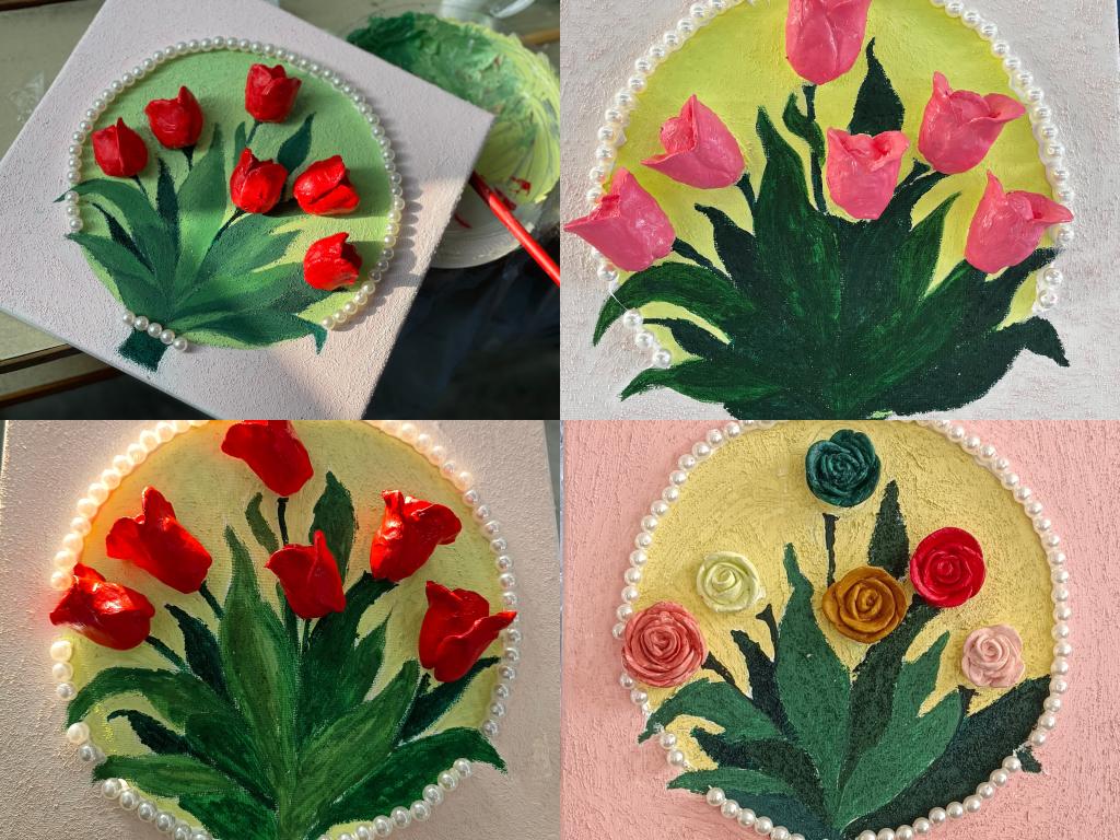 公司党委书记张悦出席活动并向大家送上节日的问候。杨芳馨演唱的歌曲《是妈妈是女儿》触动着每个人的内心。活动中,工艺师们向大家详细讲解了肌理画的构图、配色和绘画步骤,对肌理画创作方法进行现场讲解和演示,现场的女教师们跟随工艺师们的讲解和示范,尽情发挥着想象力和创造力,感受色彩与光线带来的丰富变化。大家一边研究创作,一边交流探讨,从最初的手忙脚乱变得得心应手,整个创作过程大约2个多小时,大家在画板上创造出一幅幅精致漂亮的图画,绚丽的色彩被融入纵横交错、凹凸不平的纹理变化中,展现出绚烂、炽烈、充满生命力的力量,带给大家更丰富的视觉层次感。