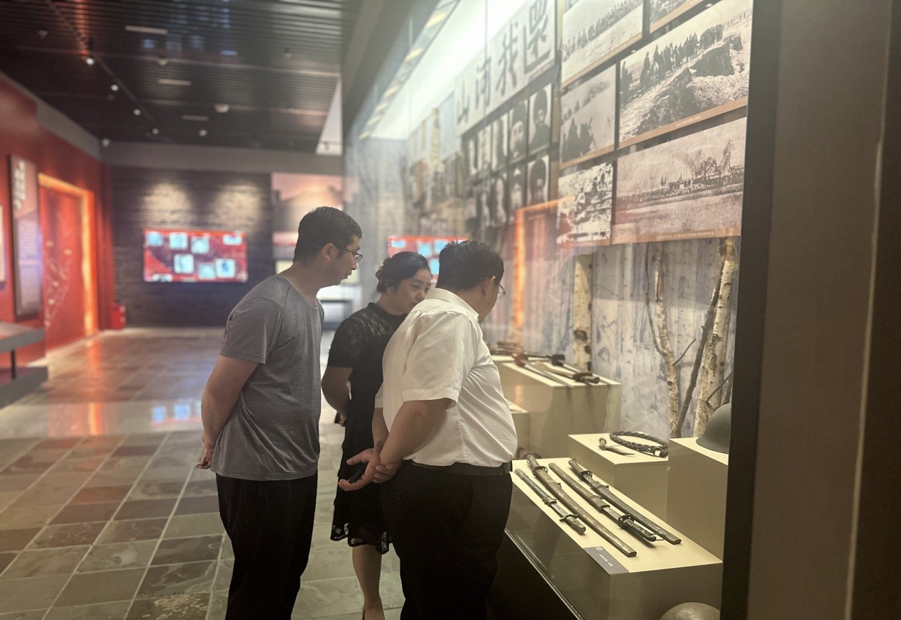 在解说员的带领下,宣讲团成员参观了陈列馆展厅,馆里展出的1000多件文物,诉说着悲壮与辉煌的东北抗联历史,一幅幅史实图片震人心魄,一件件还原历史的战争文物发人深思。伴着解说员声情并茂地细致讲解,看到“八女投江”雕像,穿过“林海雪原”,聆听赵一曼惨受酷刑而坚贞不屈的爱国主义事迹,感受革命先烈们勇敢顽强、前仆后继的英勇战斗精神,体会抗联将士宁死不屈、百折不挠的民族气节,宣讲团成员们禁不住眼睛湿润、内心震撼。